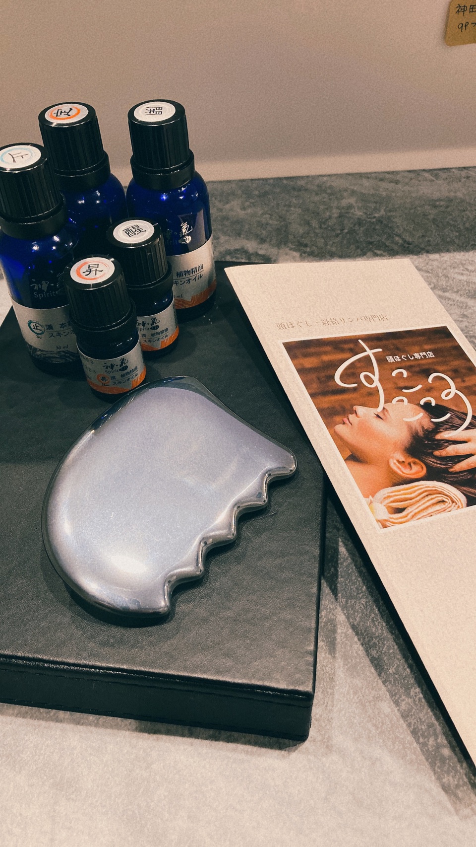 当店では、ヘッドかっさの際に漢方アロマを使用し、くし形の頭専用のかっさプレートで施術していきます。かっさで頭皮を刺激することにより、血行促進、余分な老廃物の排出を促します。凝り、むくみの解消させる効果が期待できます。かっさで血液をキレイ✨にしてみませんか?