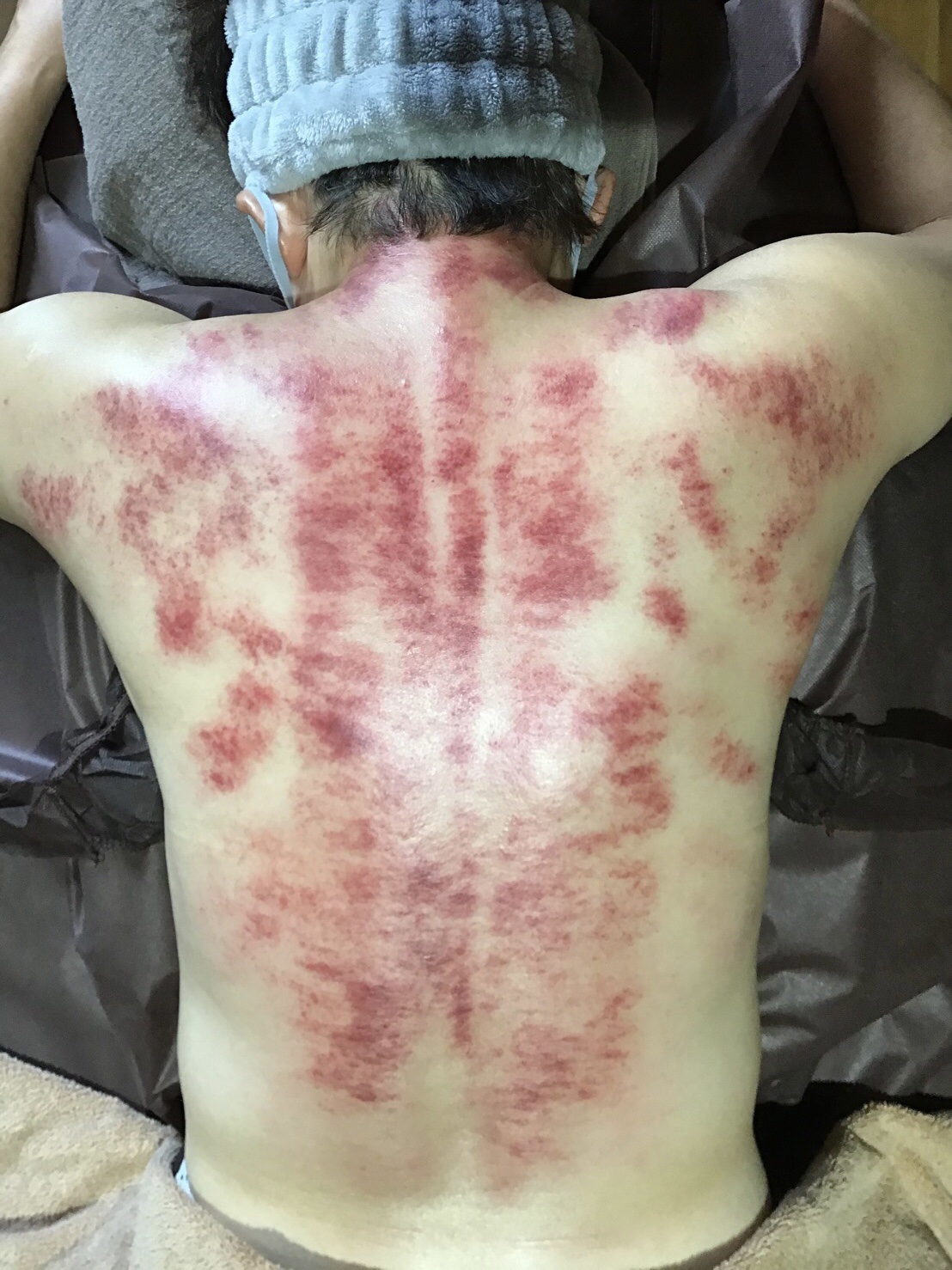 血液が汚れている方が『背中のかっさ』をすると、写真のように血液の汚れが表面に現れます!
